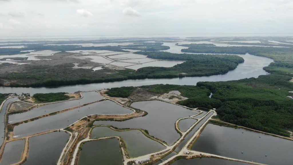 La mayoría de camaroneras utilizan motores a diésel para el bombeo de agua para el reemplazo de aproximadamente un 10% diario del volumen de las piscinas de cría del camarón.